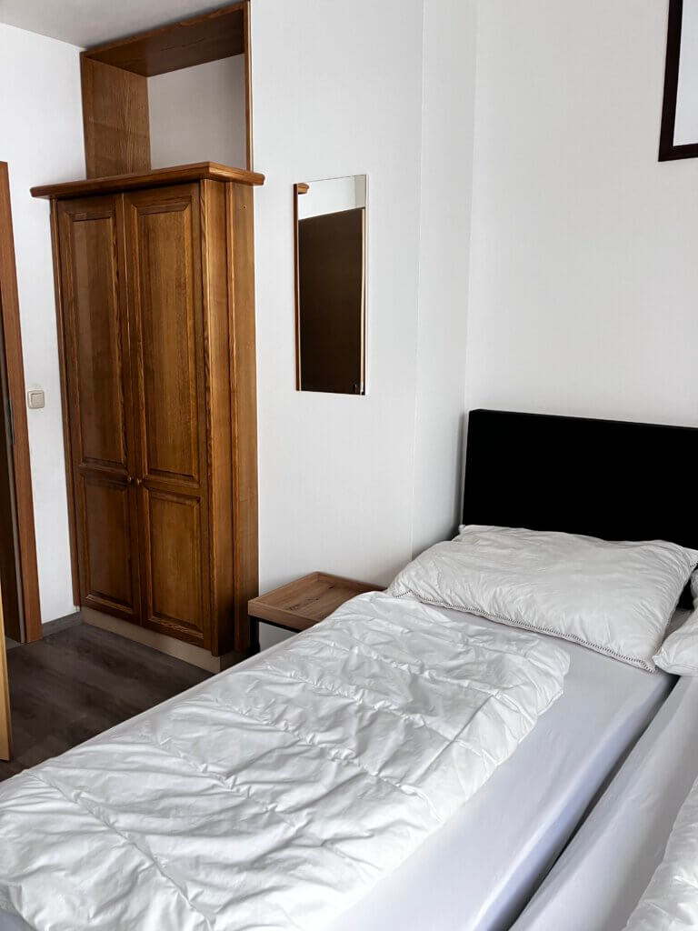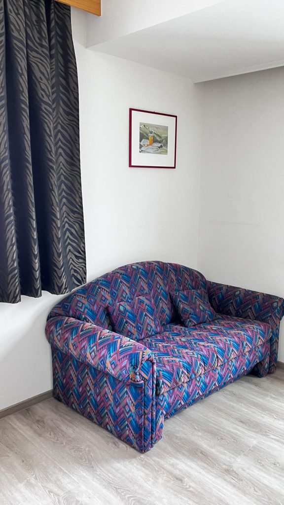 Der Wohnraum mit ausziehbarer Couch und Flat-TV lädt zum Entspannen ein, während das separate Schlafzimmer mit eigenem Flat-TV ruhige Nächte verspricht. Ergänzt durch ein modernes Bad mit Dusche und WC entsteht ein gemütliches Zuhause auf Zeit – perfekt für Paare, Familien oder Freunde, die Saalbach Hinterglemm ganz entspannt genießen möchten.